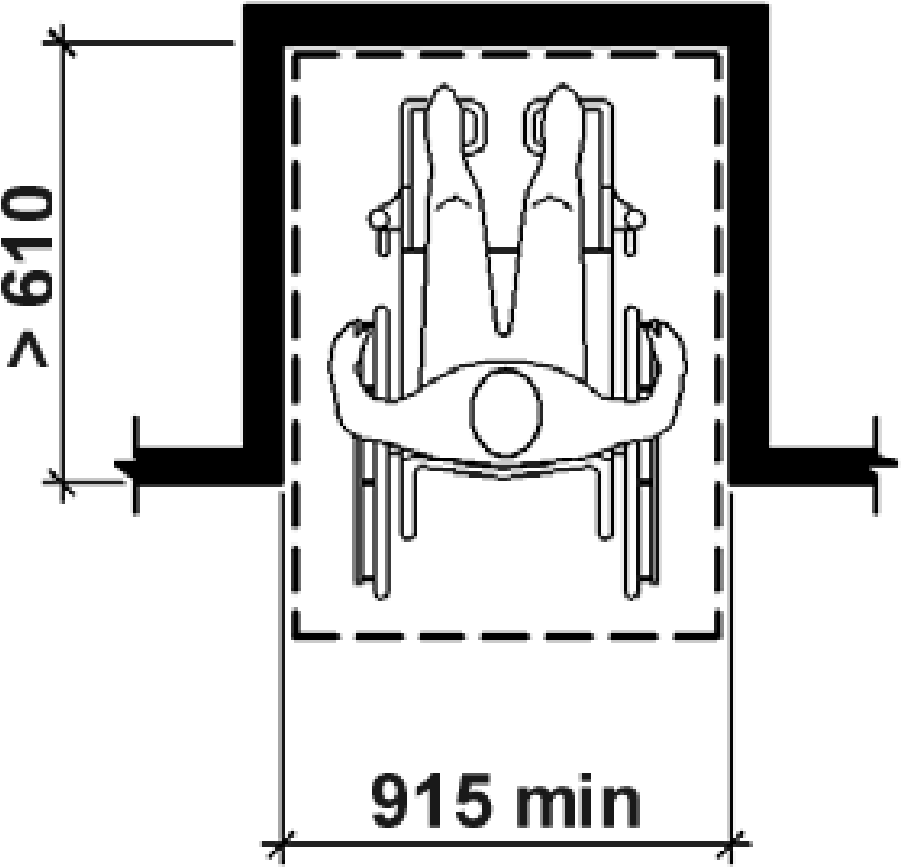 Forlengs atkomstDersom kiosken er plassert i et avlukke som er dypere enn 610 mm og brukere mÄ gÄ rett inn foran kiosken, bÞr det vÊre minst 915 mm bredde pÄ tilgangsomrÄdet foran kiosken.
