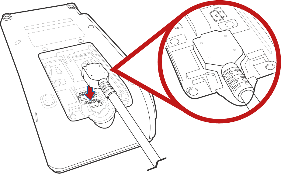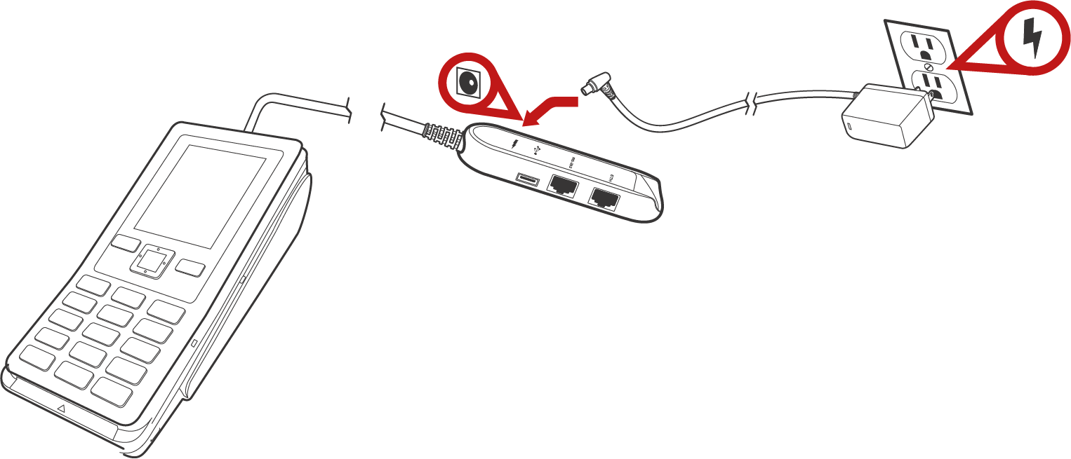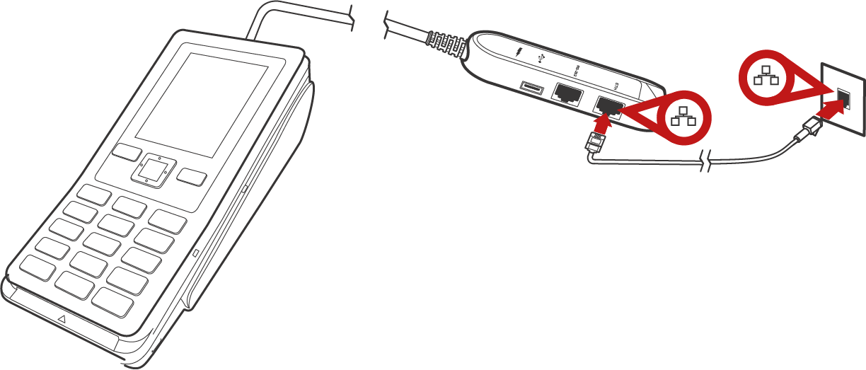 Koble til koblingsadapteren – Sett kabelen fra koblingsadapteren inn i riktig kontakt i terminalen.