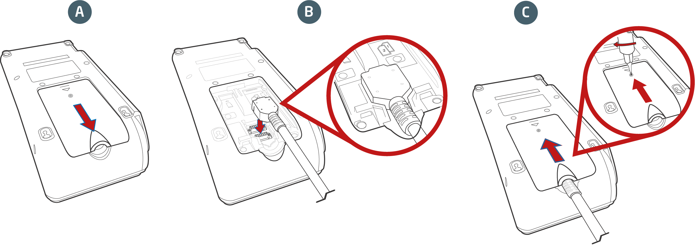 Fest dekselet igjen – Sett på lokket og skru igjen skruen for å sikre tilkoblingen.
